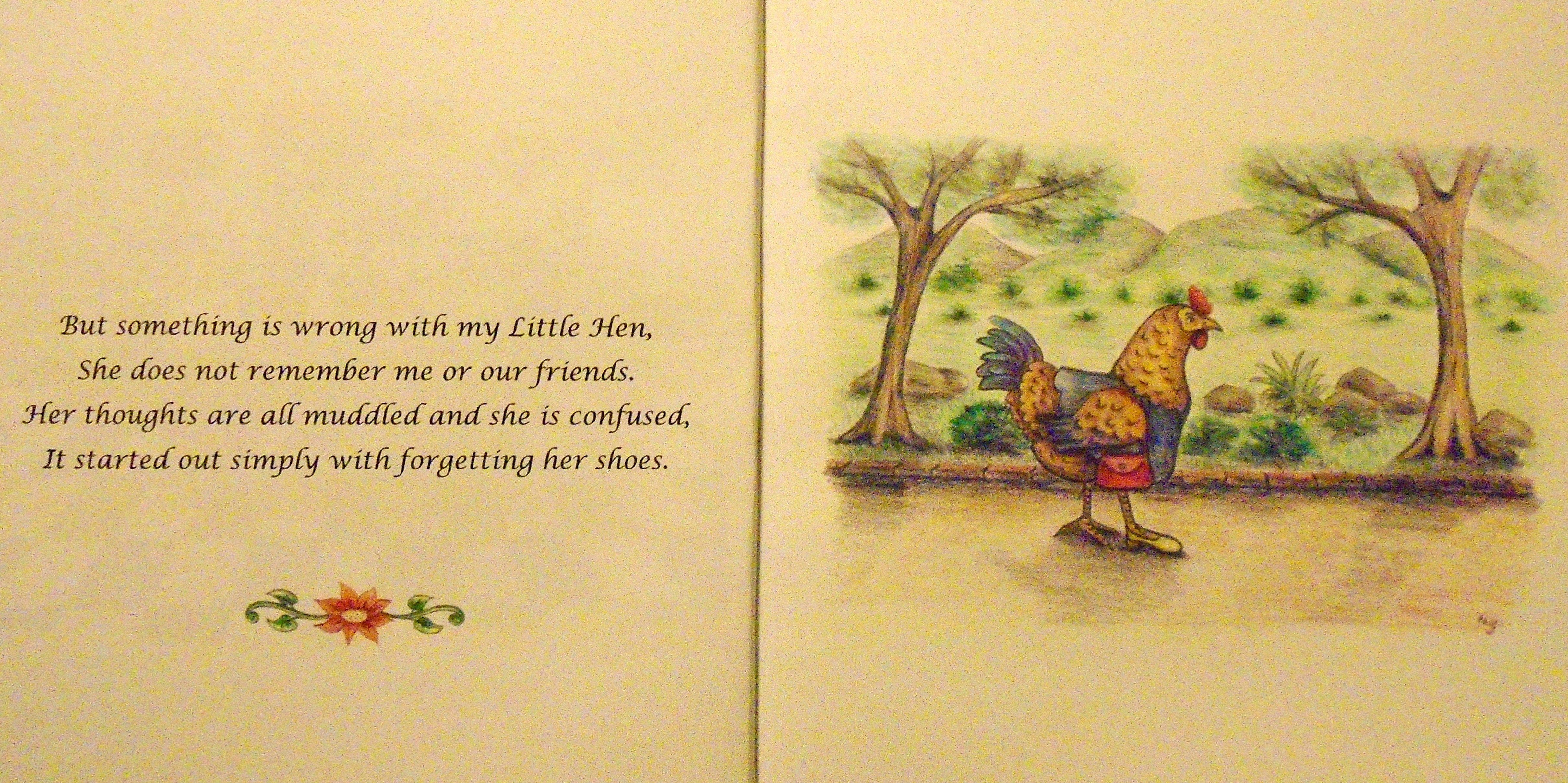Something is wrong with my little Hen. This story speaks of love and commitment while dealing with Alzheimer.